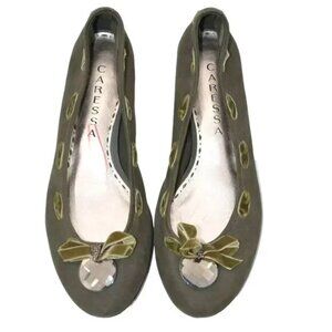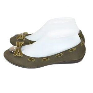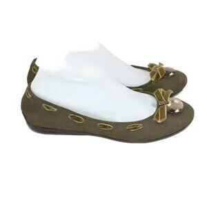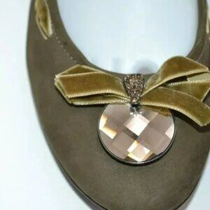 Caressa Olive Green Leather Crystal Jewel Bow Ballet Ballerina Flats Shoes 7.5