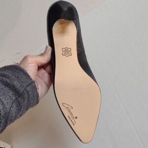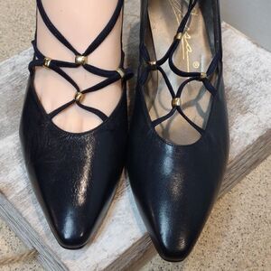 Super cute leather kitten heels. Throw back 80s with 60s vibe. Never worn. Elastic straps feel pliable but may pose some risk due to age. See pictures for details.