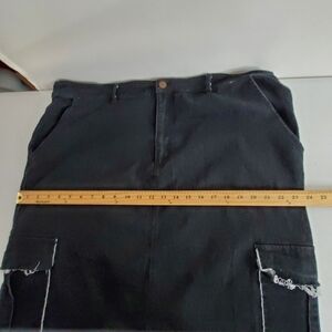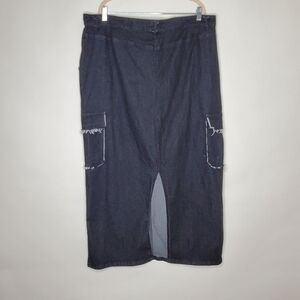 Daisy Cargo Pocket Jean Maxi Skirt Size 3X Black Wash Denim Midi Goth Distressed.