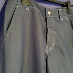 Light weight material, comfortable to wear, cargo pant styled w 2 lower side pockets. Velcro fly. Circle butt shape.