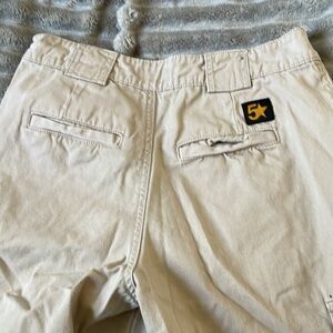 Gently used cargo pants. A little fraying on the bottom of the pants (pictured)