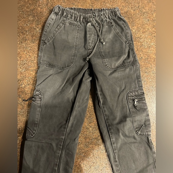 Black washed cargo pants. 25” inseam