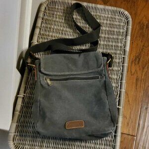 Cargotit Canvas Cargo Messenger Crossbody Bag in Dark Gray Thick, durable, high quality canvas. Wide strap, can be carried as a shoulder bag or as a crossbody. Brass hardware, leather/faux leather accents, tons of pockets.