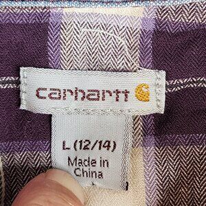 Carharrt Plaid Roll Tab Sleeve Button Up Shirt Womens Large 12-14 Purple