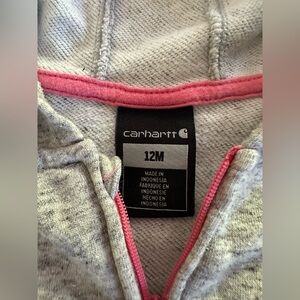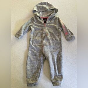 Carhartt 12M Baby Girl Gray Hooded One Piece w. Zipper. Cozy outfit or PJ’s.