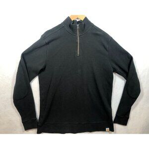 Carhartt 1/4 Zip Sweater Black Relaxed Fit Rib Knit Workwear Elbow Patch Men's L