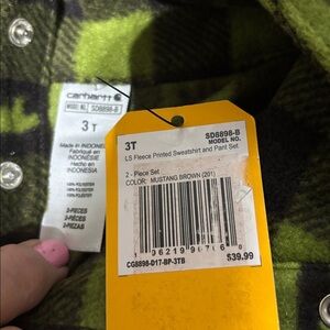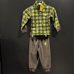 Carhartt 2 pc.Fleece jogger pants & pullover bear/checkered pattern 1/4 snap top