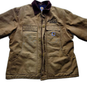 Upgrade your winter wardrobe with this durable Carhartt Arctic Traditional Coat. This men's XL coat, quilt-lined for added warmth, is the perfect outerwear for tackling harsh weather conditions. Despite being gently used, its khaki brown hue ensures timeless style and versatility. Don't miss out on this essential piece - buy now and stay warm in reliable Carhartt quality!