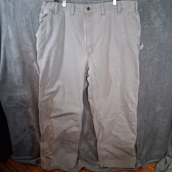 Carhartt mens 44x34 duck loose Dungaree Fit carpenter pants Dessert Beige color inseam 32 used good condition no rips or tears have a small dot stain on front right leg see picture