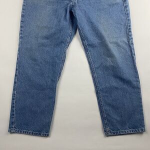 Introducing a pair of men's Carhartt B18STW jeans in a classic blue denim color. These jeans feature a traditional fit with a 5-pocket design and button/zipper closure. The waist size measures at 41 inches, with an inseam of 30 inches. These jeans are made of 100% cotton material and are machine washable for easy care. (ACTUAL SIZE 41x29)