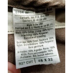 Carhartt B27 CHT Vtg Duck Canvas Lined Double Knee Bib Overalls 46 x 32 USA Made