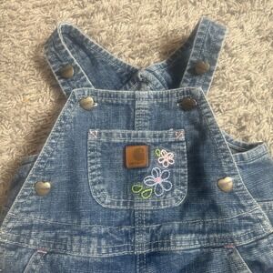 Carhartt Baby Girl Blue Jeans Denim Overalls Embroidered Floral 18 months
