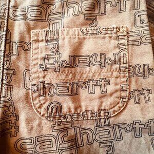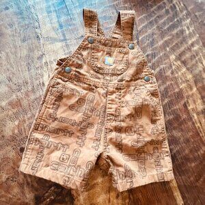 Carhartt Baby Overalls 18M Brown Allover Logo Print Durable All Cotton