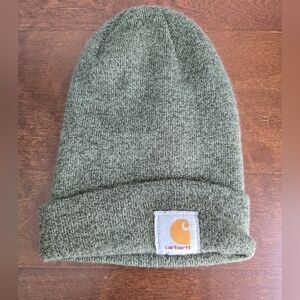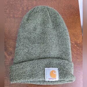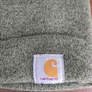 Carhartt Beanie Hat Cap Gray Yellow Acrylic Watch Fleece Graphic Logo Workwear