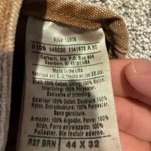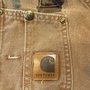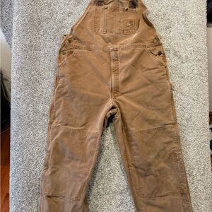 Carhartt Bib Overalls Mens 44x32 R27 BRN Lined Double Knee USA Made Duck Canvas*