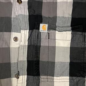 ⚫ Carhartt 🪵 Black & Gray Buffalo Plaid Short-Sleeve Button-Up – L