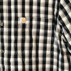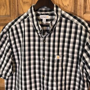 Carhartt Black & White Plaid Shirt. Men's size 2XL, Button Down, Short Sleeve, Casual Cotton Work Shirt. Double Front Pocket with Pen sleeve.