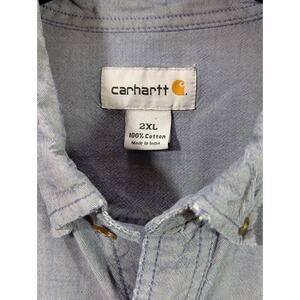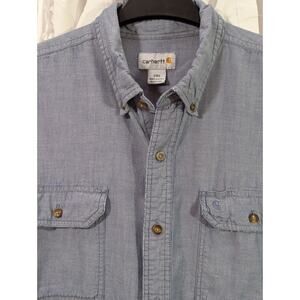 Carhartt Blue 100% Cotton 2 Pocket Long Sleeve 2XL (distressed @ collar)