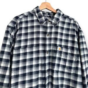 Carhartt Blue 100% Cotton Plaid Flannel Work Wear Button Down Shirt Mens Size XL