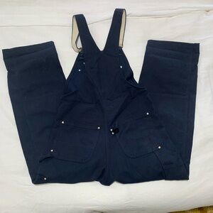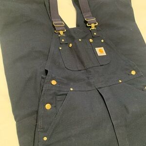 Durable Carhartt overalls with adjustable straps. Equipped with multiple pockets and brass hardware.