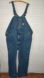 Classic blue denim overalls by Carhartt. Features adjustable straps and a front pocket with logo.