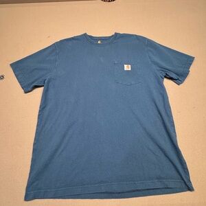 This Carhartt tee offers a classic crew neck design in a solid blue color, crafted from durable heavyweight cotton. Ideal for everyday wear, it combines comfort with the brand's signature workwear style.