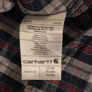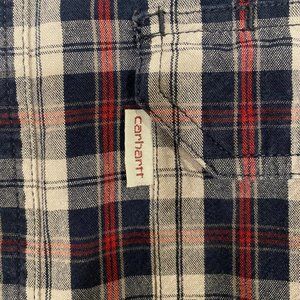 Carhartt Blue White Red Plaid Cotton Relaxed Fit Button Down Shirt Men's XL Tall