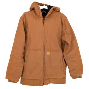 Carhartt Boys Active Flannel Quilt Lined Hooded Jacket Brown XL Outdoor Chore