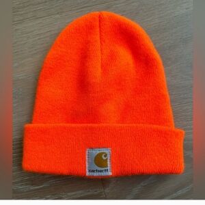 New Without Tags Embrace warmth and style with the Carhartt Orange Knit Hat, featuring a classic cuffed design. This vibrant accessory is perfect for adding a bold touch to your outfit while keeping you cozy. Ideal for casual wear, it stands out with its bright orange hue.