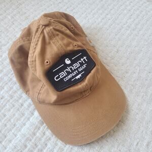 Carhartt Brown 100% Cotton Cap Hat One Size Fits Most. Preowned. Good Condition. Minor wear. Minor wash wear. Snapback. Adjustable strap. Front Logo. Smoke free home. Offers Welcome.