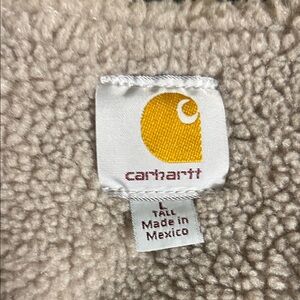 Carhartt vest in brown with cozy fleece lining. Includes front pockets and durable design.