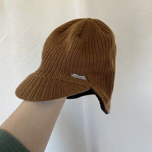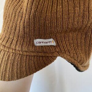 Carhartt Brown Knit Insulated Cap With Brim & Ear Flaps corduroy style warm