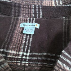 Carhartt Brown Plaid Flannel 1/2 Button Up Casual Cotton Shirt Women's Large