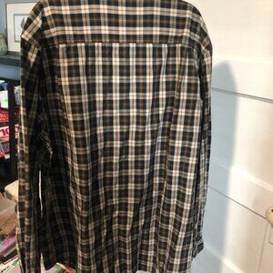 This Carhartt relaxed fit, long sleeve work shirt in brown, tan, and black plaid is made from cotton. Features an XL size and a convenient patch pocket.