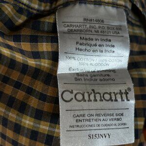 Carhartt Button Down Shirt Chest Pocket Brown Plaid Long Sleeve Collared Size L