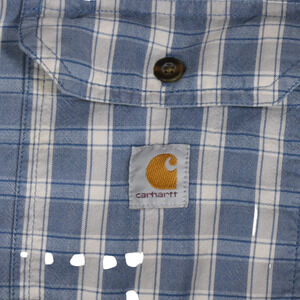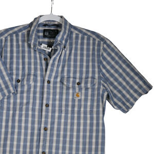 Carhartt Button Down Shirt Men Size S Blue Plaid Loose Fit Cotton Flap Pockets