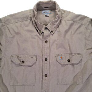 Carhartt Button Down Shirt Men XLT TALL Beige Long Sleeve Relaxed Fit Cotton
