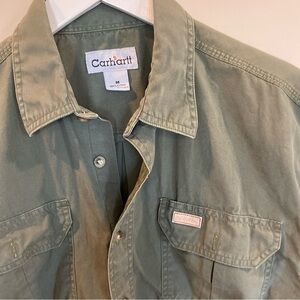 Carhartt Button Down T Shirt Green Mens Medium Utility Work Outdoor
