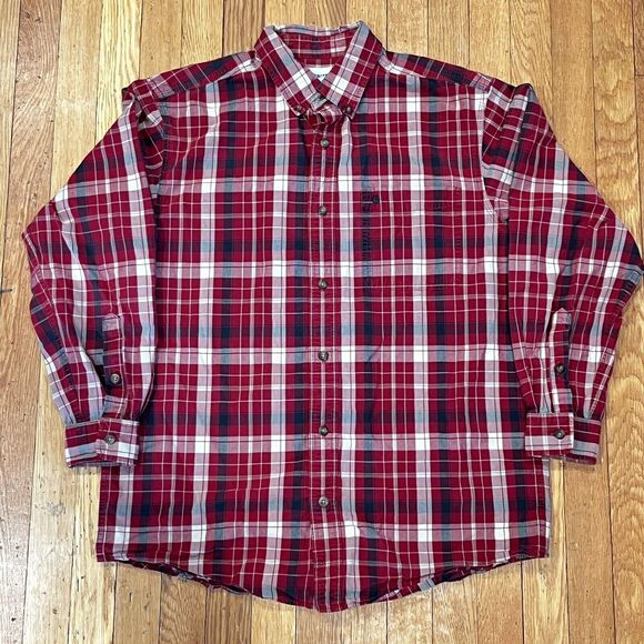 Carhartt Button Up Shirt Mens Red Plaid Long Sleeve Casual Workwear Large