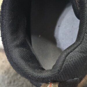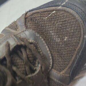 Has some wear and tear from use. Has so.e brown stains on the toe. See all the photos.