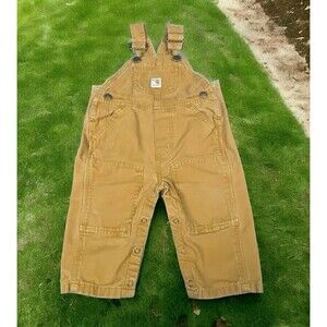 This Carhartt Canvas Bib Overall is a must-have for your little one's wardrobe. Made from 100% cotton canvas fabric, it features a solid pattern in brown color. The overalls have a sleeveless design, adjustable straps, and buckle closure for a comfortable fit. The garment care is easy as it is machine washable and wrinkle-resistant. With accents like snaps and logo, this one-piece overall has ample pockets and is suitable for all seasons- winter, summer, fall, and spring. Perfect for casual wear, it is suitable for boys and girls in the age range of 9-12 months. Made in Vietnam, it is a great addition to the baby and toddler clothing collection.
