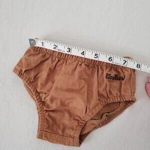 Carhartt caramel brown diaper cover/bloomers with stretchy elastic waist! Please see all photos for condition and measurements Size 0-12 months fit, 0-3m per tag but roomy 1J