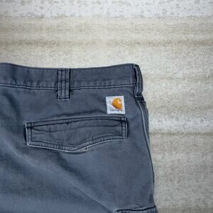 Carhartt Cargo Shorts Dark Grey Canvas White Logo Work Wear 11" Inseam Relaxed Fit