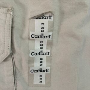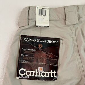 Carhartt Cargo Work Shorts in men’s size 28. Classic khaki beige color, 100% cotton with durable 7.5 oz ring-spun canvas fabric. Features multiple side cargo pockets, triple-stitched main seams, and a comfortable work fit designed for better range of motion. Perfect for everyday wear, workwear, or outdoor activities. Excellent quality and long-lasting durability from Carhartt.