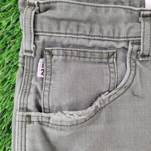Carhartt Carpenter Pants 32x28 Distressed Faded Workwear Streetwear FR Work Pants Model FRB159 Utility Pants Flame-Resistant Canvas Stained Sun Faded Frayed Hems Straight Leg Relaxed Fit Loose Fit Moss Green