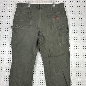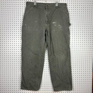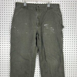 Carhartt Carpenter Pants 40x32 Green B11 MOS Paint Distressed Faded Work Wear
