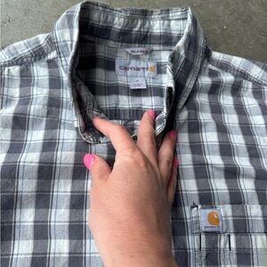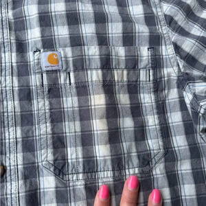 Experience the perfect blend of style and comfort with this Carhartt gray casual button down shirt. Crafted for versatility, it features a classic design ideal for everyday wear. The shirt's lightweight fabric ensures a relaxed fit, making it a staple for any casual occasion.