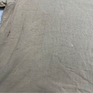 Tried and True See all pictures as they shows some discoloration on the tee and some distressing around the collar