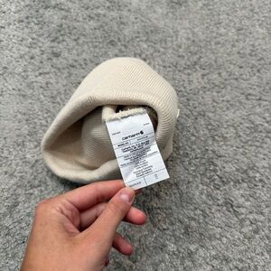 Cozy Carhartt beanie in a soft cream color. Ideal for chilly days. Never worn Brand new without tags