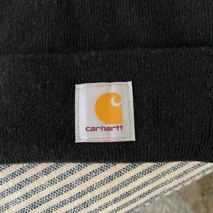 Carhartt Cuffed Black Slouchy Rib Knit Logo Utility Gorpcore Iconic Beanie Hat. A must have go-to for the cooler months of fall and winter. A great hat for outdoor work or bumming around.